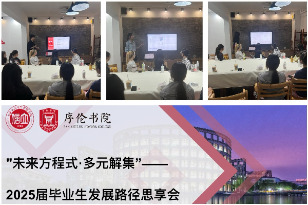 为进一步拓宽学生的职业认知视野,助力同学们科学规划未来发展方向,积极探索与实践多元发展路径。5月14日,序伦书院面向2022级学生举办了以“未来方程式·多元解集”为主题的2025届毕业生发展路径思享会。活动邀请了2021级优秀毕业生马昊宇、吴桐、高雨珊与慎高鑫,围绕“升学、就业、出国”三大方向,分享他们的成长故事与实战经验,现场气氛热烈,干货满满。
