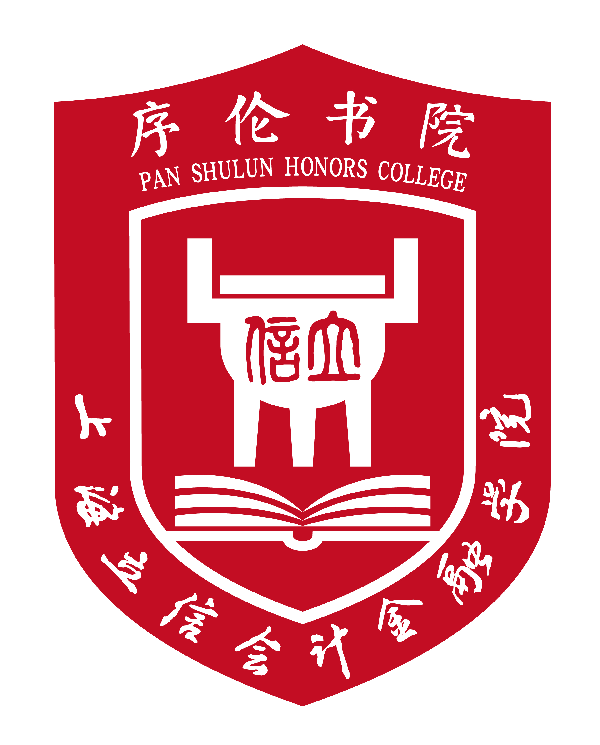 院徽以盾形为基本造型,具有庄重、坚定、可靠的精神内涵。盾形内包含有“鼎”、“打开的书本”两个主体元素。“鼎”上有“立信”二字,寓意“一言九鼎”,突出“立信”的诚信文化内核。“打开的书本”是文化与教育的象征物,体现书院的文化教育功能。图形顶部为颜体“序伦书院”全称及英文名,下部围绕学校校名标准字。书院名称标准字选用颜体,字体端庄厚重,文化气息浓厚,符合书院的精神气质。院徽整体寓意序伦书院秉承“立信”精神,以诚信精神培育英才。